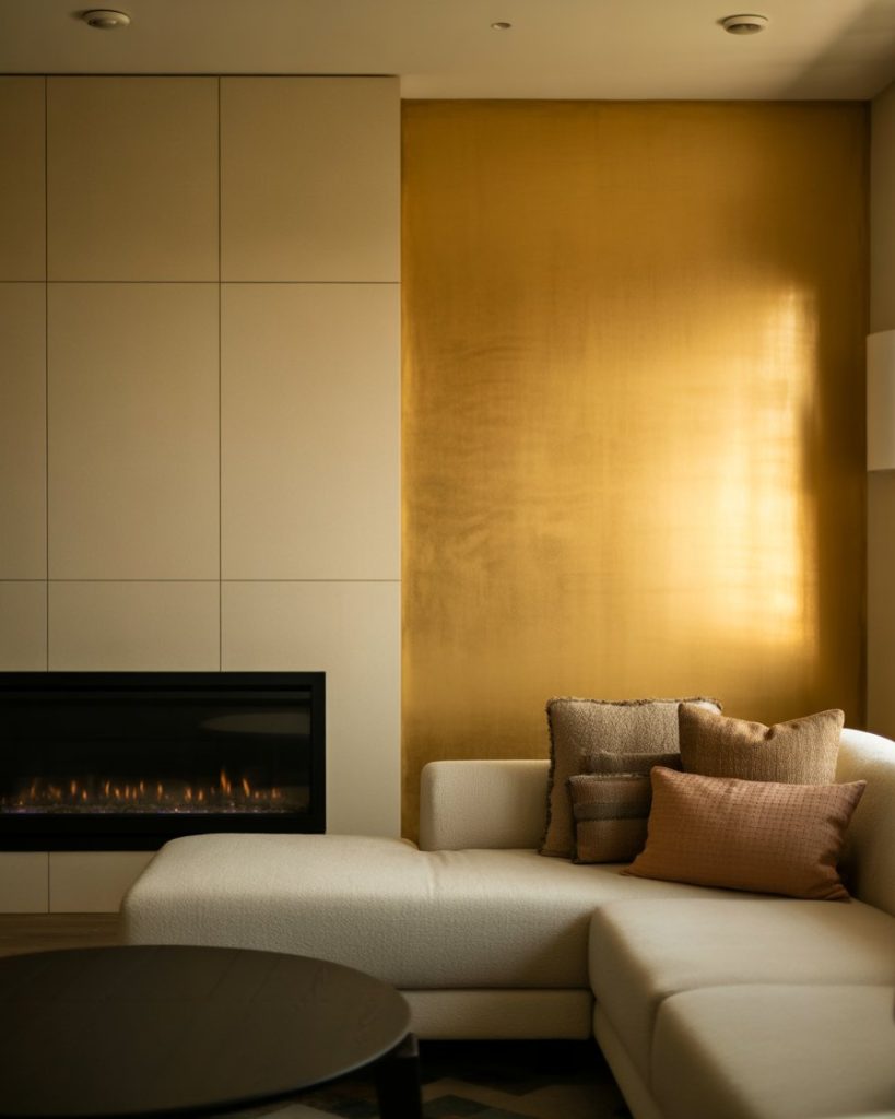 Indulge an understated glamour with metallic-tinged paints like champagne and gold. Painting a wall behind the fireplace or a couch ensures soft light is reflected while instantly adding a luxurious feel. This is a perfect 2026 trend for anyone who craves warmth wrapped in sophistication.