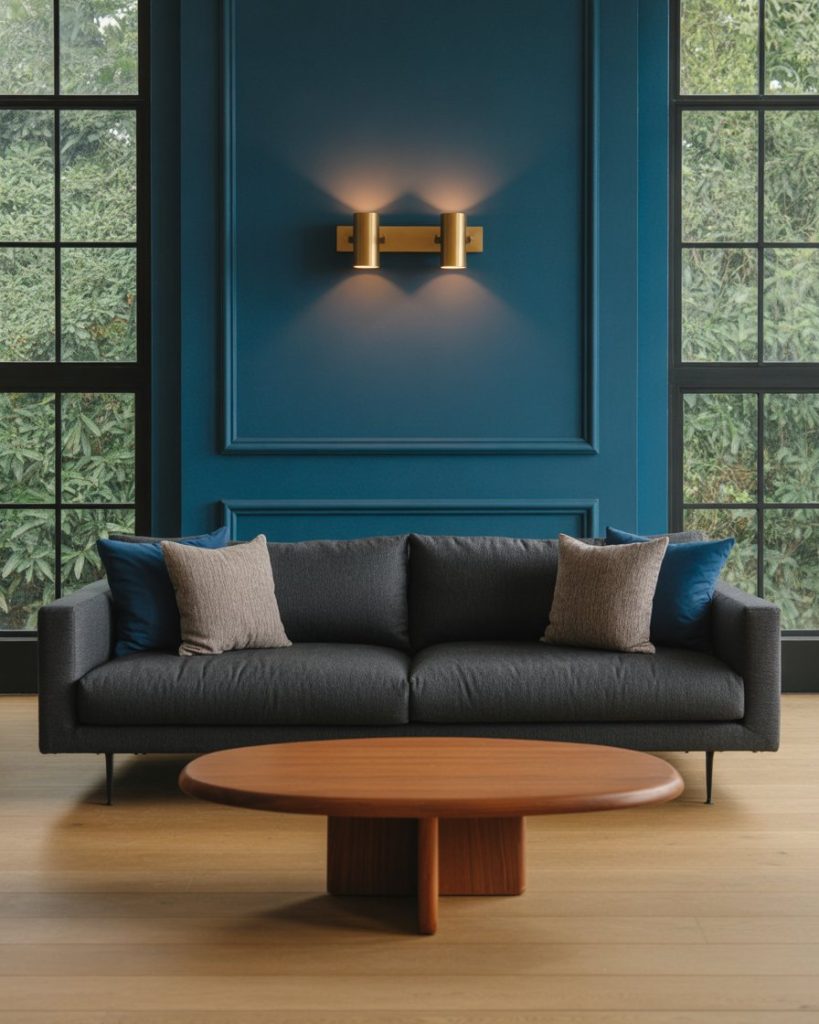 Rich blue offers the duality of elegance and calm. Use it behind a couch or Tv to amp up modern drama with calm energy. Along with brass detailing and neutrals, this color speaks strongly, embodying character and renown from here on for 2025 and beyond.