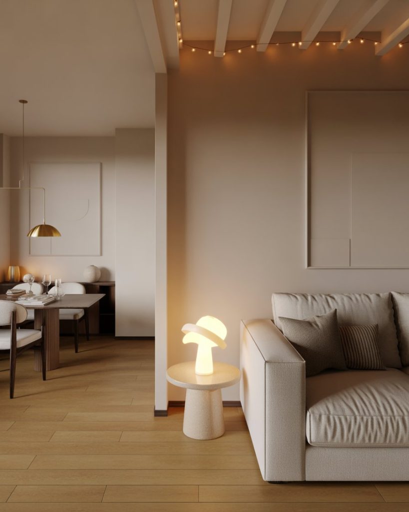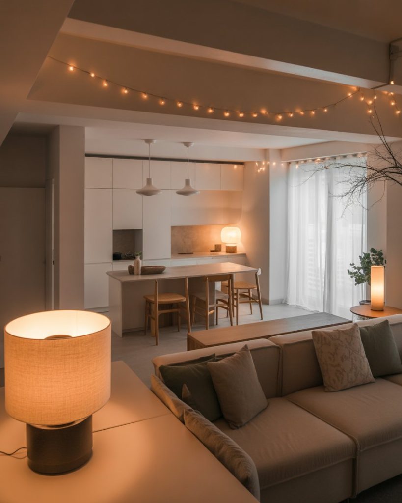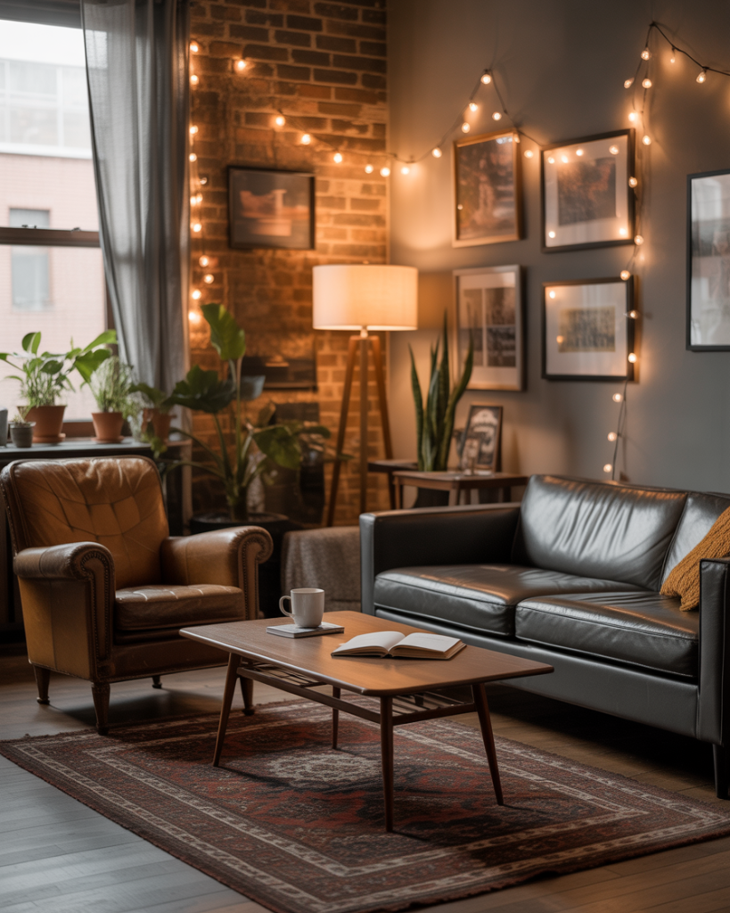 Good lighting transforms mood and style. Mix floor lamps, table lamps, and string lights to create ambiance in your cozy minimalist apartment. Layered lighting is essential for couples sharing small studios, offering flexibility from bright task lighting to soft evening glow. Choose warm bulbs for a cozy look or industrial-style fixtures for a modern vibe. Affordable lighting upgrades make a huge visual impact.
