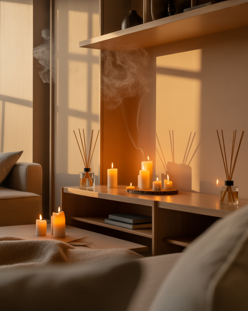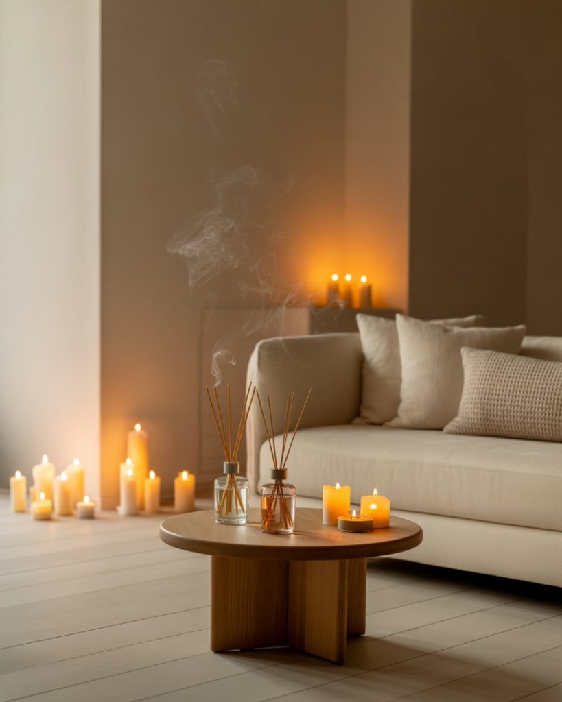 Home fragrance adds invisible comfort. Use candles, diffusers, or incense to define zones—fresh citrus in the bathroom, lavender in the bedroom, or woodsy notes in the living room. Scent layering complements the minimalist cozy trend by focusing on atmosphere rather than clutter. Affordable and personal, it’s a sensory trick that makes even a rented space feel luxurious.