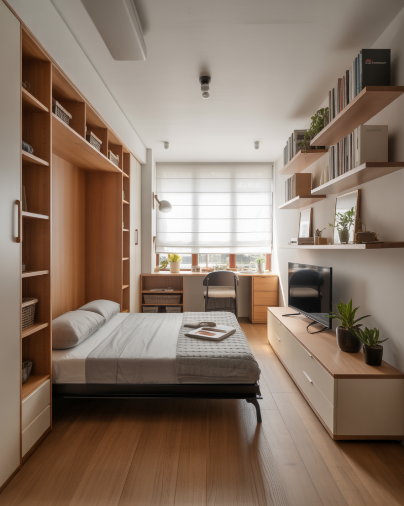 Smart storage is essential for small space organization ideas. Invest in furniture that hides clutter—ottomans with compartments, beds with drawers, or shelves that climb the walls. In a minimalist living room, stick to streamlined shapes that look neat even when filled. Modular units and floating shelves make great creative storage solutions, allowing style and practicality to coexist seamlessly.