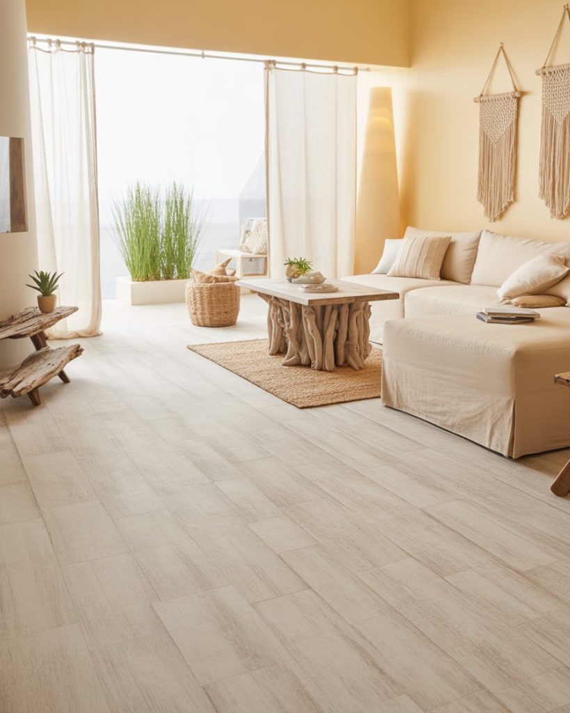 Coastal-inspired palettes can open even the smallest apartments. For a fresh and airy look, go for sandy neutrals for the walls and sea-glass blue accents. Bring in driftwood or other woven textures for beach inspiration. This look works beautifully with Scandinavian-inspired minimalism, especially in a studio or rented apartment where light décor helps maximize brightness. For a soft, summer vibe, add seashells and nautical rope details.