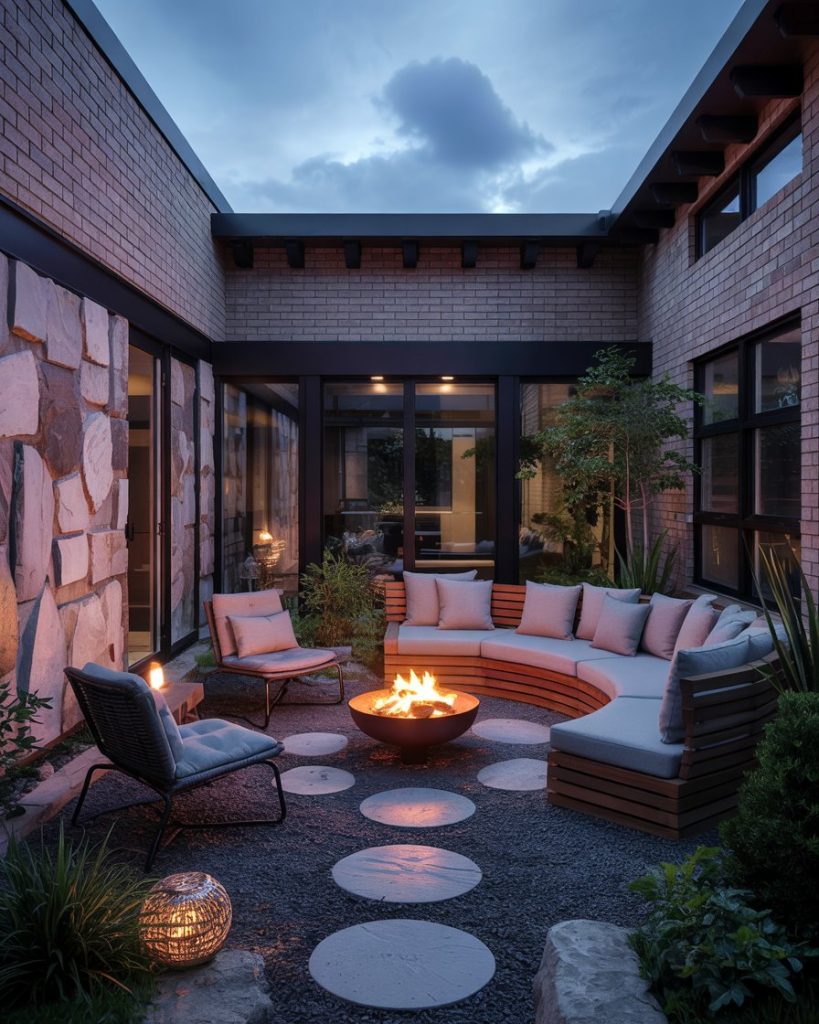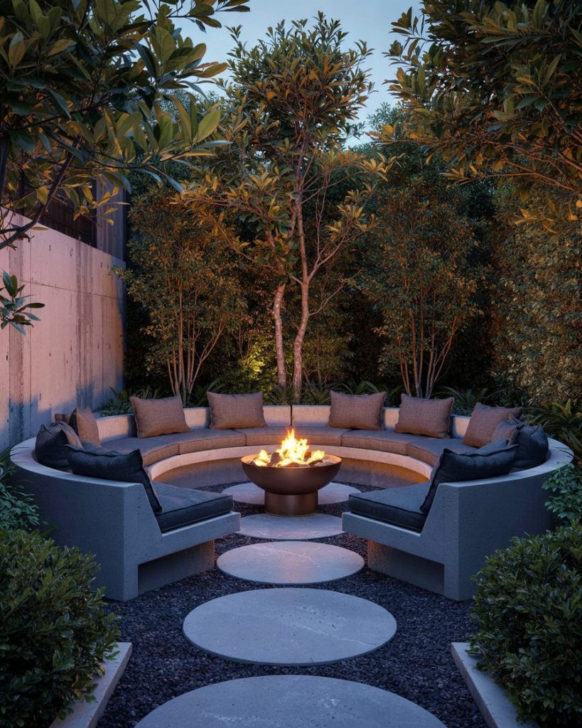 Rounded gravel seating pods are trending for small yards and narrow spaces. Imagine a circular area lined with low chairs and a fire bowl in the center—easy to maintain and modern to the eye. Designers love how the sound of gravel crunching adds sensory pleasure, creating a space that feels both sculptural and personal.