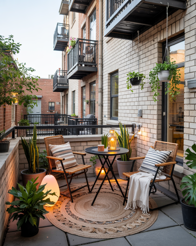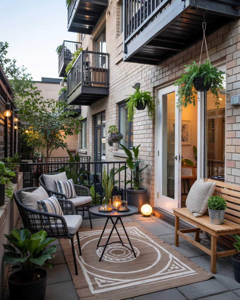 For urban dwellers, turning a townhouse balcony or terrace into a tiny cozy sanctuary is the next big move. Hanging plants, folding chairs, and outdoor rugs redefine compact spaces. Pair cheap café tables with fairy lights, and even a six-foot-wide balcony becomes a summer retreat for morning coffee or night wine.