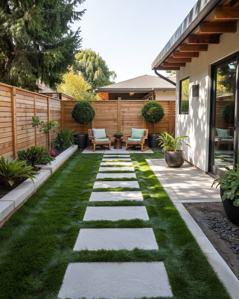 Modern homeowners are embracing grassless wellness zones—decks with mats, planters, and water features. This relaxing setup works well for small yards, keeping the vibe natural but minimal. A cedar platform, soft music, and herb planters make it the perfect weekend reset corner.