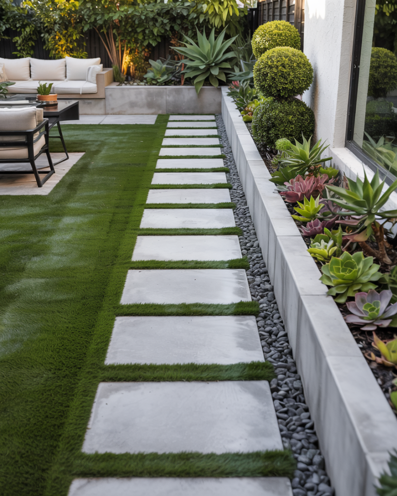 Skip mowing forever—synthetic turf paired with gravel paths is the new “lazy luxury.” It stays cool, saves water, and keeps mud out of the house. Landscape firms say over 40% of 2026 installs are now grassless, especially for dog owners and busy families.