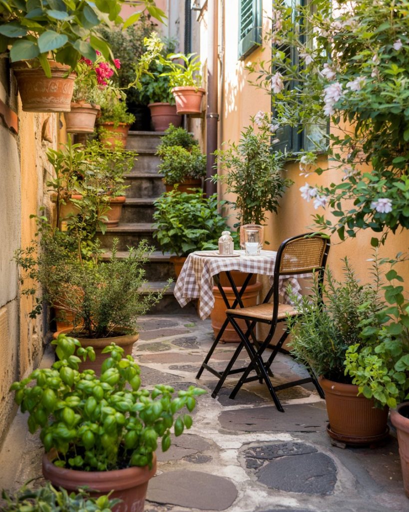 An Italian herb lane turns dead side yards into basil-scented magic. Add rosemary, thyme, and a café table, and suddenly pasta night feels like a dream from Florence. Works perfectly in narrow spaces and gives foodies a daily reason to step outside.