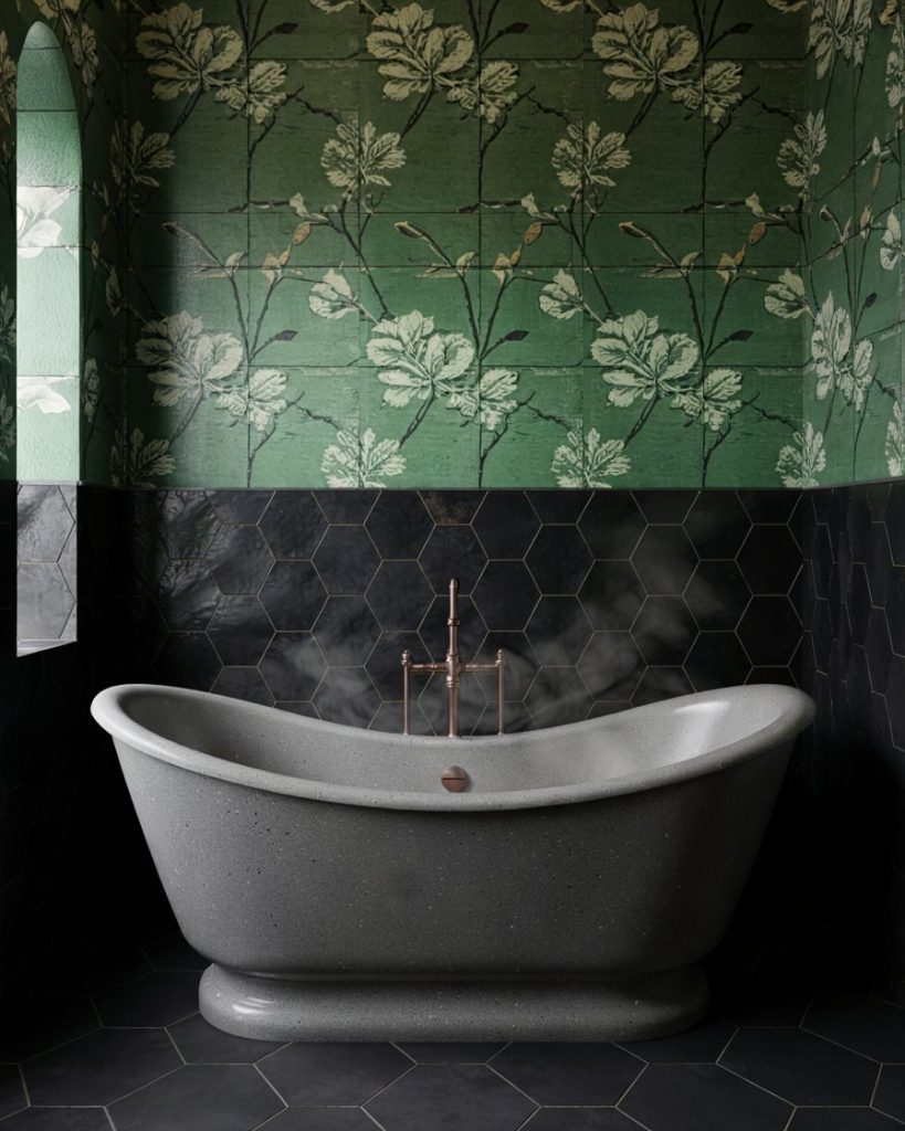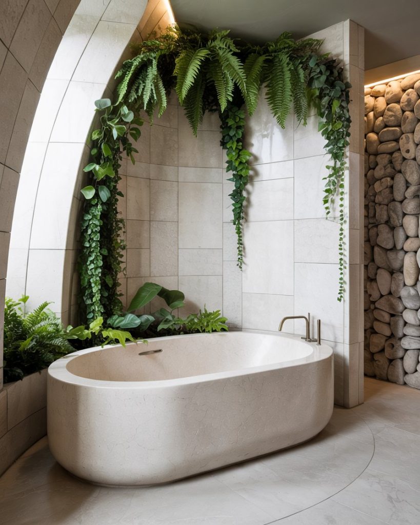 Green is the color of rejuvenation and wellness—the core themes of bathrooms in 2026. Live plants, natural stone, and bamboo home accessories suggest nature, and indoor greenery is invigorating and mood enhancing. Biophilic design makes the space beautiful and restorative. Adding spa elements like rainfall showers and pebble shower flooring will resonate the harmony between one’s body and the environment.
