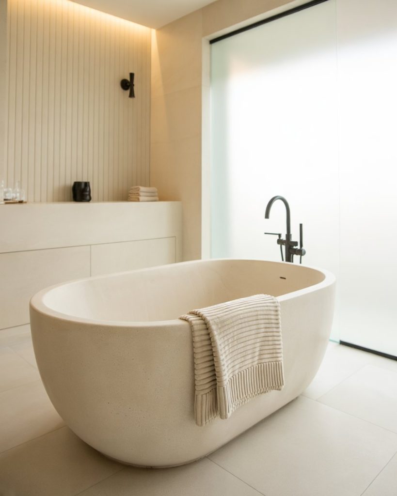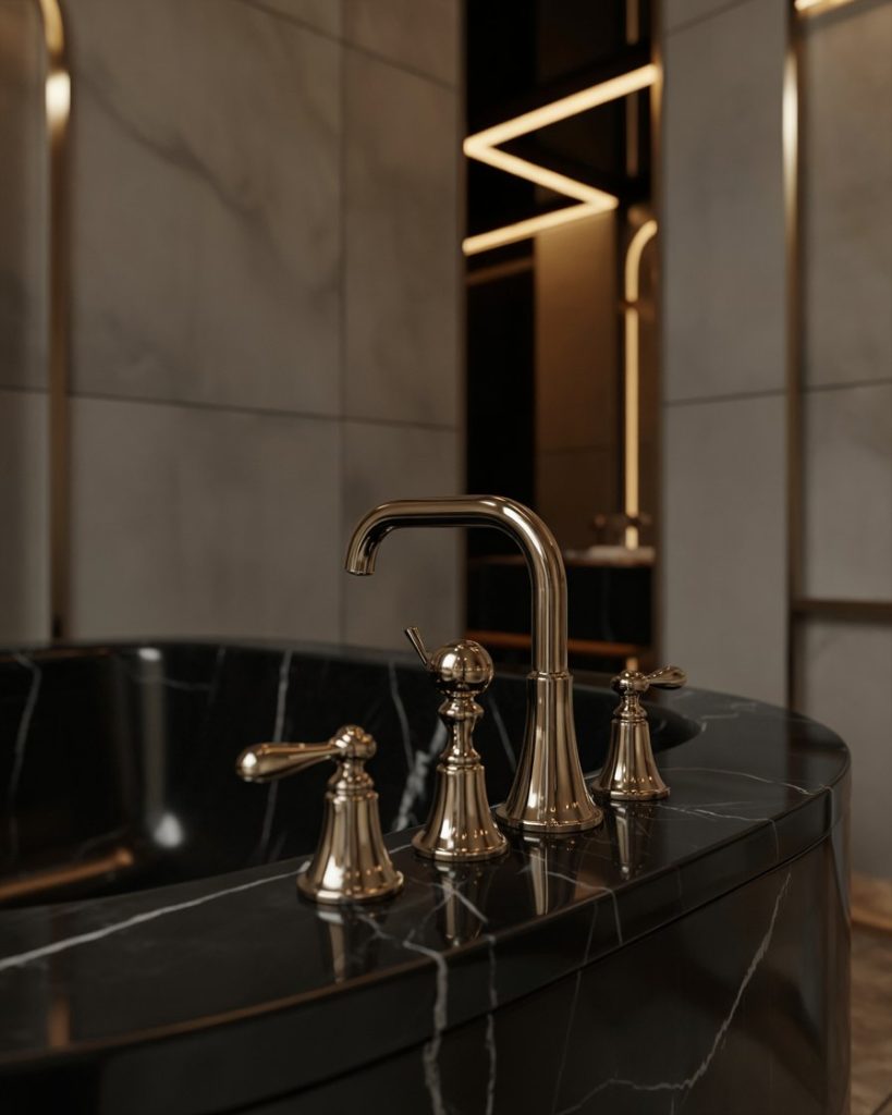 The combination of black and white is timeless. In 2026, the trend moves into high-contrast, dark matte walls with crisp white basins and sculptural lighting that defines form and shadow. This look works well in urban lofts or in minimalist homes that are designed for bold simplicity. As noted by Architectural Digest, a monochrome space is still confidently designed as a classic with texture.