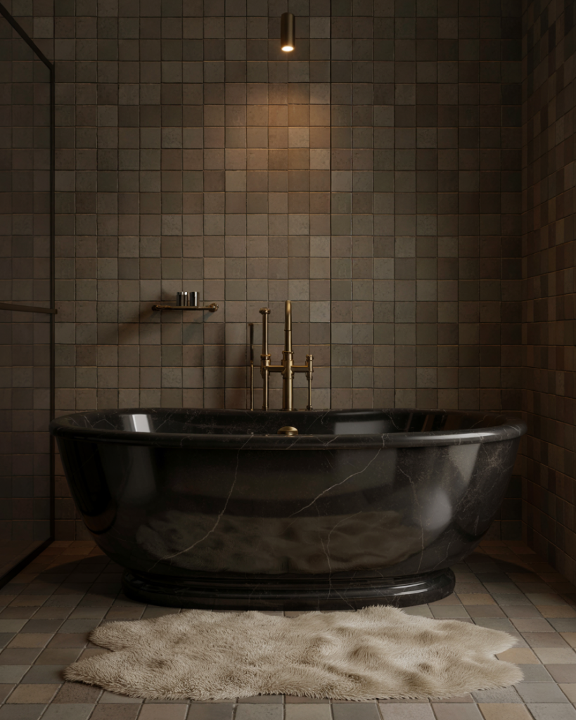 A dark bathroom doesn’t have to feel gloomy—in 2026, it’s about creating moody sophistication. Deep charcoal tiles, brushed gold fixtures, and layered lighting turn the space into a cocoon of comfort. Pair black marble with white accents to prevent heaviness, and add candles or ambient sconces for an indulgent spa touch. Designers like Athena Calderone note that contrast and texture make darkness inviting, not oppressive.