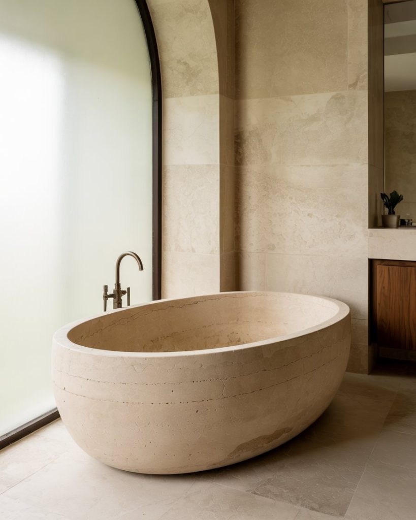 A neutral palette never goes out of style, and 2026 brings subtle evolution—taupe, soft beige, and sandy tones layered with natural stone. This design works beautifully for both primary and guest bathrooms, where calm and cleanliness rule. Use rattan baskets, linen towels, and smooth tile to enhance texture. The result is timeless and easy to update with seasonal decor.