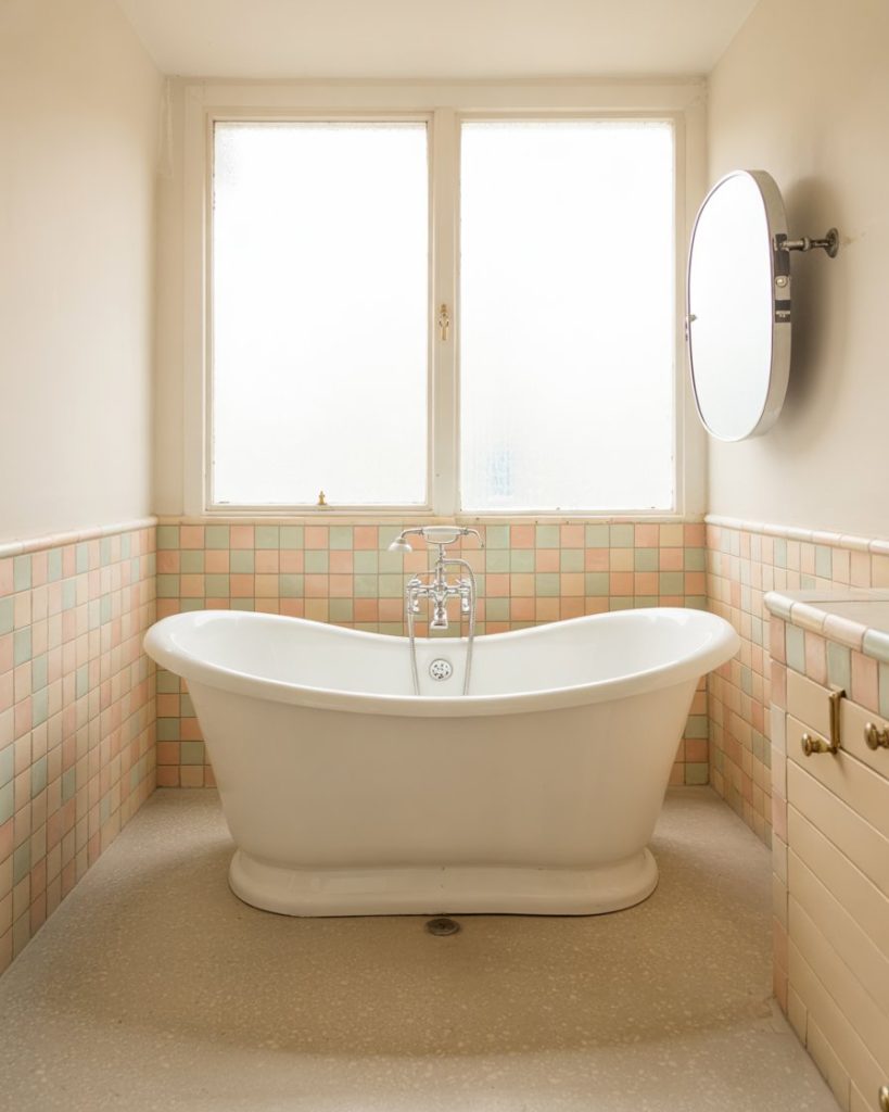 Cute and playful retro design is trending, with 60s and 70s fusion pop-style pastel bathrooms. Think of a small or half bath with warm pastel pinks, mints, and baby blue tiles, round mirrors, and soft terrazzo countertops. This nostalgic decor style evokes joy and is inviting. Designers such as Jonathan Adler have long been advocates for mid-century aesthetics.
