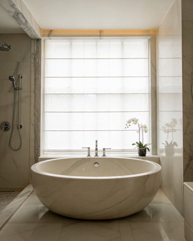 An ensuite should feel the utmost indulgence and comfort. This year’s new neutral palette of soft grey, sand, and off-white will encourage calm and spa-like serenity. Imagine the comfort of a soaking tub, double vanities, steam-enhancing aromatherapy lighting, and smart temp control. Kelly Wearstler and other top designers outlined the use of brushed brass and travertine for timeless and enduring elegance in the primary suite.
