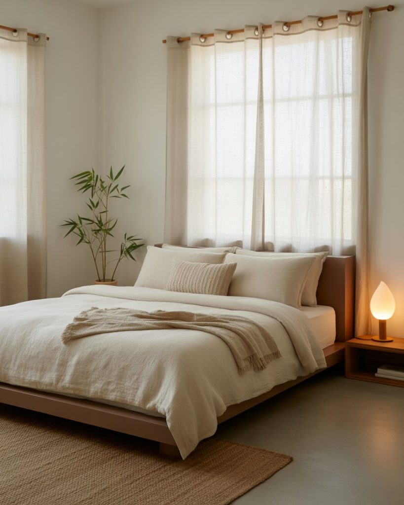 This fusion of Japanese and Scandinavian styles focuses on mindfulness and simplicity. White, brown, and grey dominate, with natural materials grounding the room. Ideal for small rooms, it’s a cozy retreat from chaos. Minimal decor, low furniture, and gentle light define the aesthetic, perfect for meditation or peaceful rest.