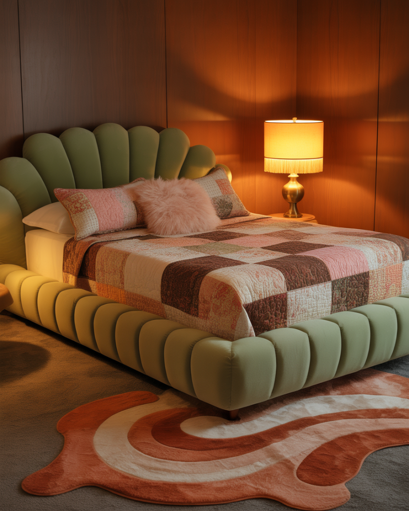 The 1970s are back — warm brown, mustard, and green tones make a statement. This nostalgic design is cozy yet bold, using corduroy, wood paneling, and vintage lamps. Ideal for guest rooms or adventurous homeowners, it embraces pattern and personality. Add a pink or blue accent to modernize the look without losing its charm.