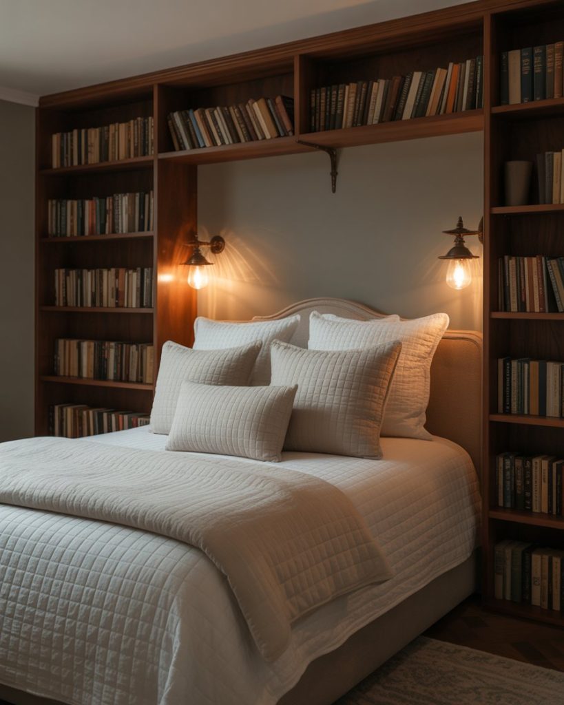 Convert that basement into a secret reading retreat. Built-in shelves, dark wood, and white throws create a rhythmic competition between colors. Create warm lights and small work desks for a multipurpose setup. Great for a guest or spare room; the closely-knit design offers secrecy along with peacefulness and sophistication – an area where one can unwind absolutely.