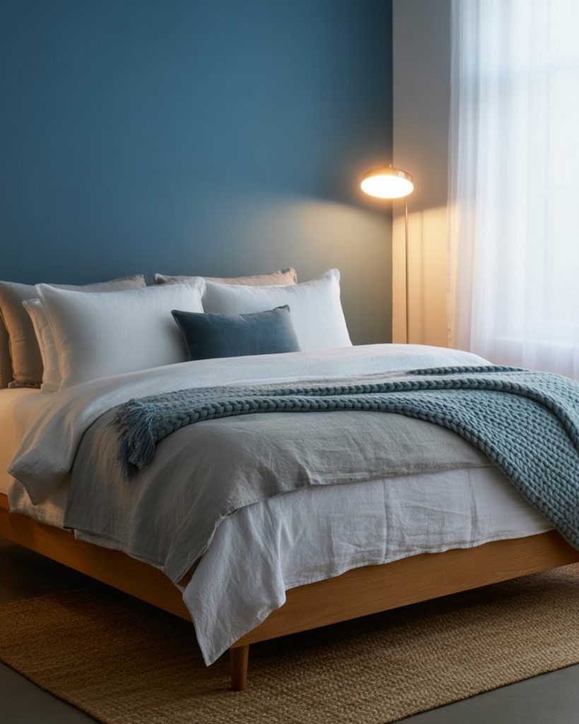 Accents in blue bring calmness to creativity with some depth into your space. Emphasis on navy or cerulean accent wall and headboard, respectively, in a smaller sized room, will keep the room free from any sense of crowding. Due to the need for contrast-and-comfort-set-up, white, and grey bases are preferable. An embrace of warm textures such as thick wool throws or even a cotton duvet will keep the transformation of this technique from feeling too austere, instead imparting an ambience of elegance and comfort. This apartment idea is equally practical for stylish modern apartments and cosy guest suites.