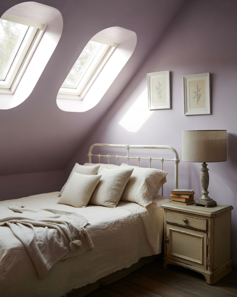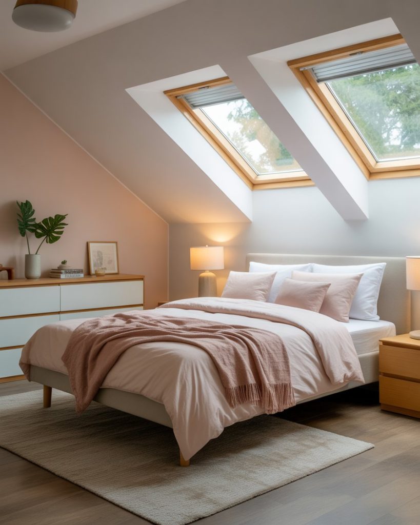 The idea of converting an attic into a little cozy hideaway has always been a great one and is beyond great in 2026. Paint low ceilings and beams in white, bright pale grey, or soft pink for added illumination. The presence of a skylight and low-profile furniture with minimal styling will help create a feel of spaciousness. The slanted walls can generate a romantic and aesthetic mood, an excellent endearment for couples or readers who want a private and peaceful nook.