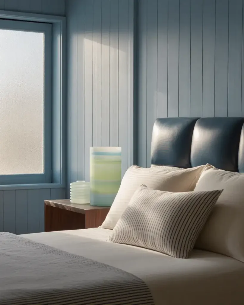 Where this works best: vacation homes and guest bedrooms that want a sense of place. If your home is within driving distance of any large body of water—the Atlantic, the Pacific, the Great Lakes—a blue-and-black bedroom quietly references that geography without becoming a theme room. It’s specific enough to feel intentional and flexible enough to live with year-round.