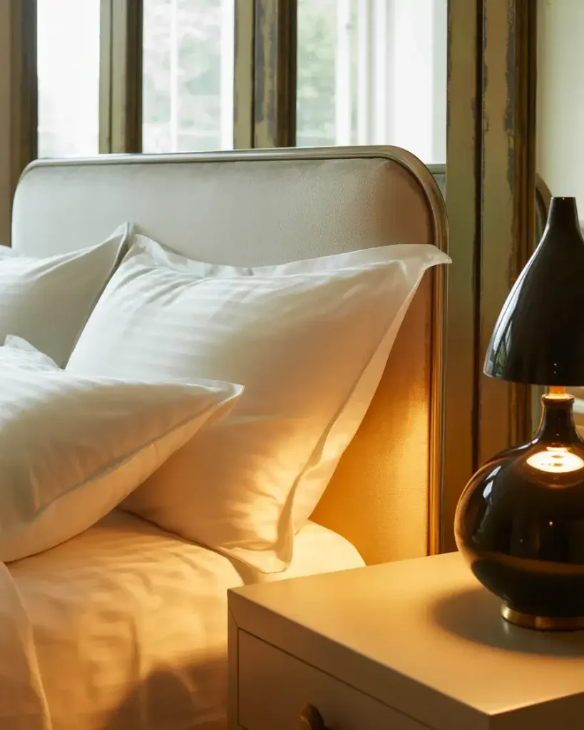 Practical insight for achieving this look without breaking the bank: start with the bedding. Cream linen duvet covers are widely available and immediately shift the room’s warmth register when paired with any dark element. You don’t need to repaint—even against white walls, a cream duvet and a black lamp can start building the palette. Layer in a jute or ivory wool rug next, then consider a black-framed mirror or artwork as the finishing anchor.