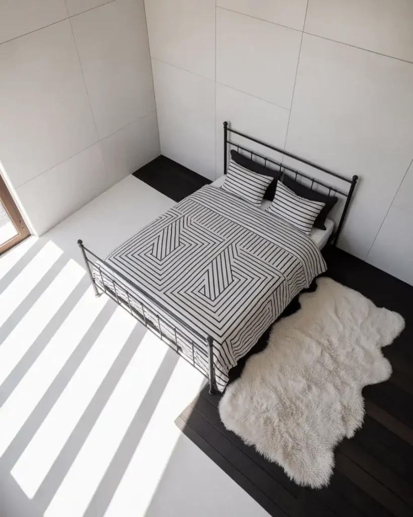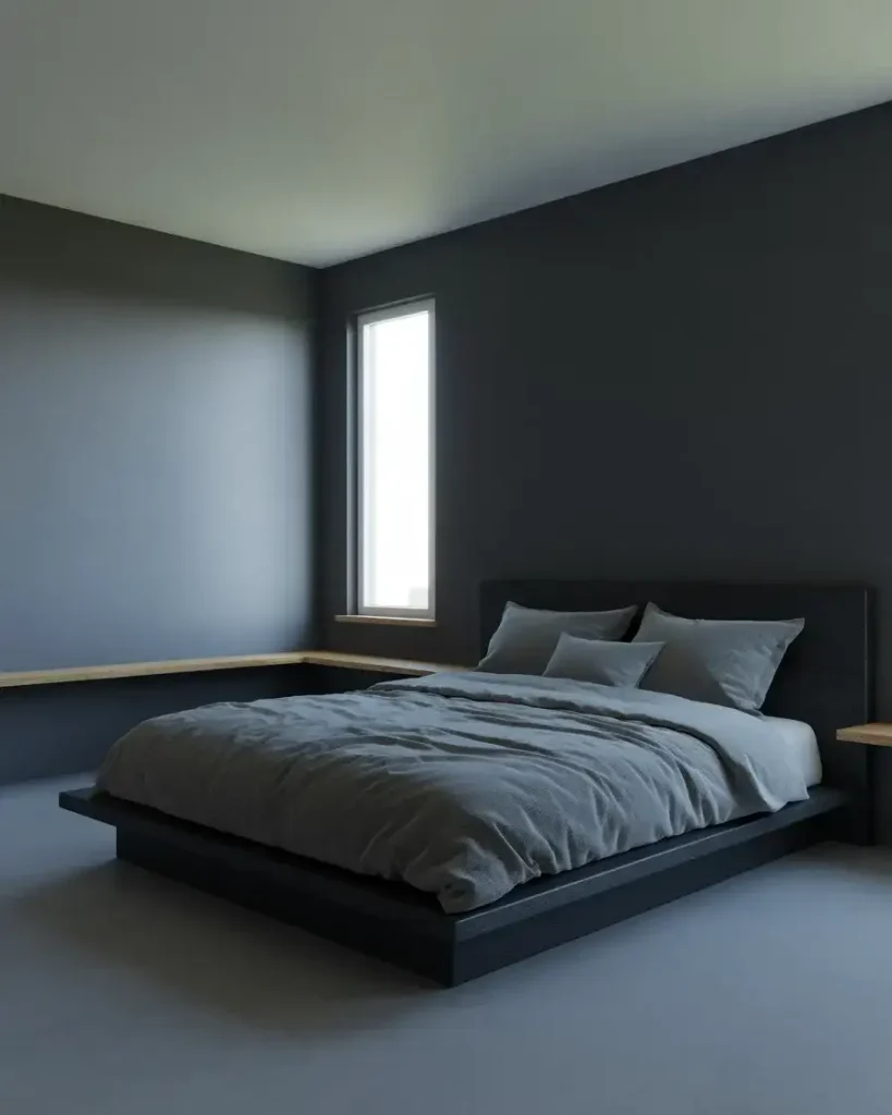 There’s a reason grey and black consistently top the Pinterest search charts for bedroom design. This palette is almost foolproof—it’s inherently sophisticated without asking too much of the viewer. In a minimalist bedroom, charcoal grey walls paired with a black platform bed and cool-toned grey linen create a room that feels like a boutique hotel. Furniture stays low-profile: maybe a single floating shelf, a slender nightstand, and one good lamp. The restraint is the point. This is inspo for anyone who finds maximalism exhausting.