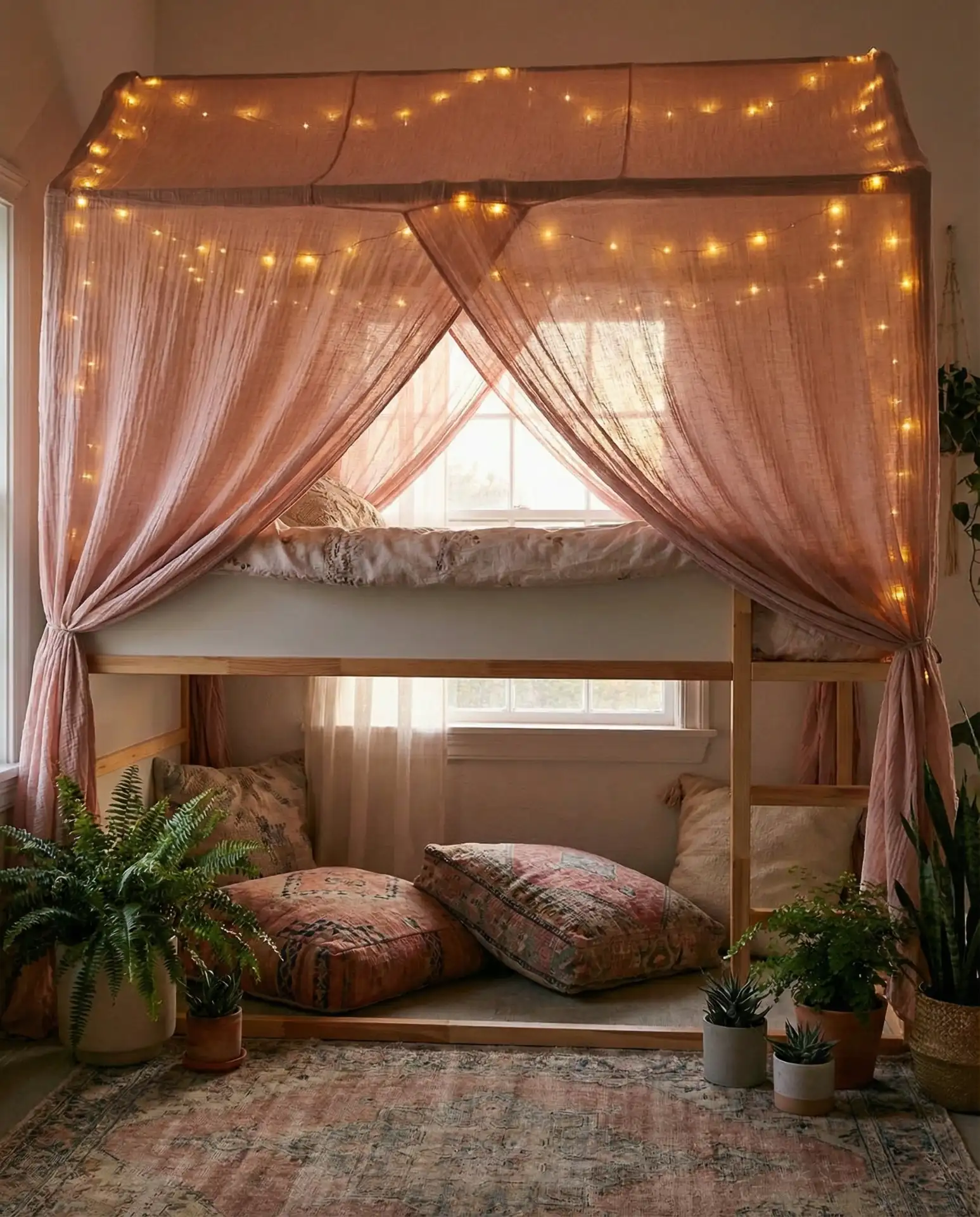 The combination of navy and pink and rose tones creates a surprisingly sophisticated palette that works for adults despite its initial juvenile associations. Use navy as the dominant color—through paint, bedding, or major furniture—and introduce pink through artwork, throw pillows, or a single accent chair. The contrast between cool and warm and dark and light creates visual interest that monochromatic rooms lack. This aesthetic bedroom approach appeals to homeowners who want personality without sacrificing grown-up credibility, particularly women decorating their first solo spaces.