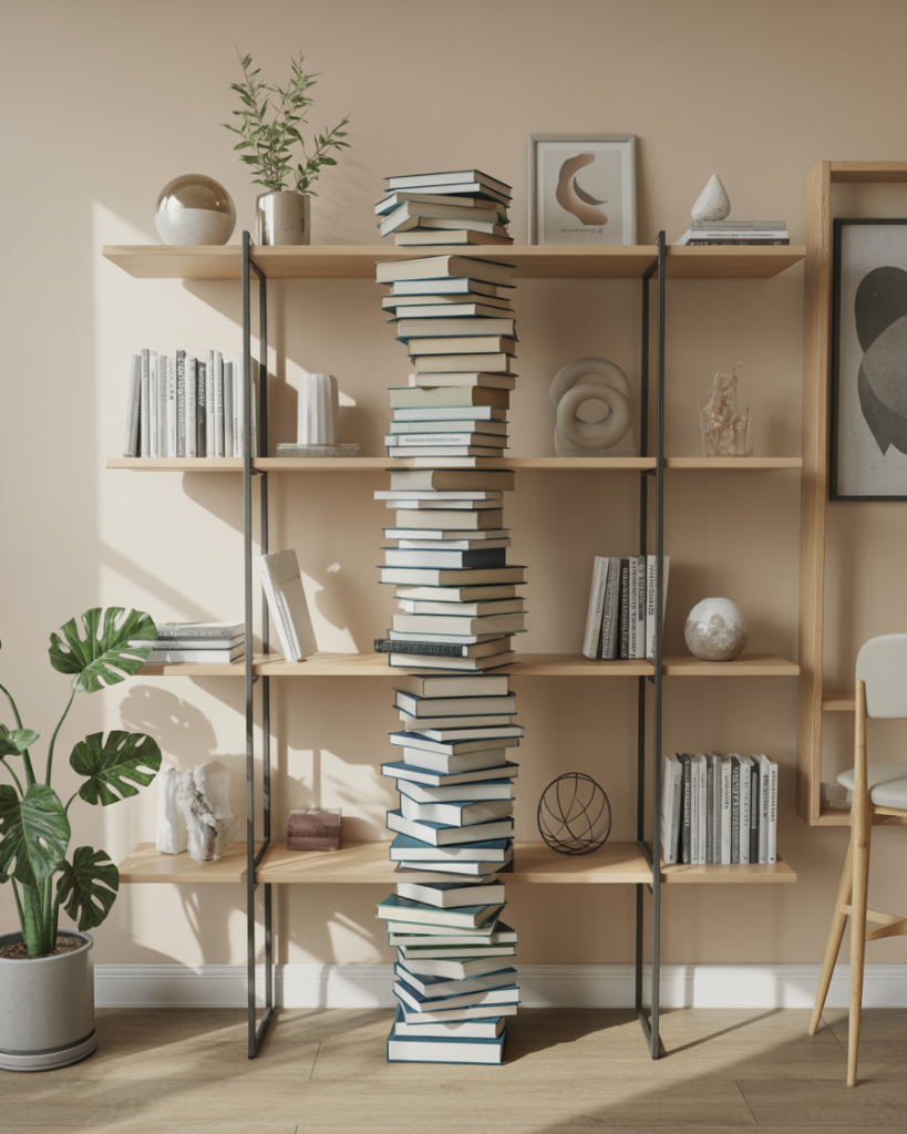 Turn books into sculptural elements by stacking them horizontally, vertically, or in spirals. This creative method breaks the grid look and adds movement. Great for people with large collections who want artful chaos rather than stiff order.