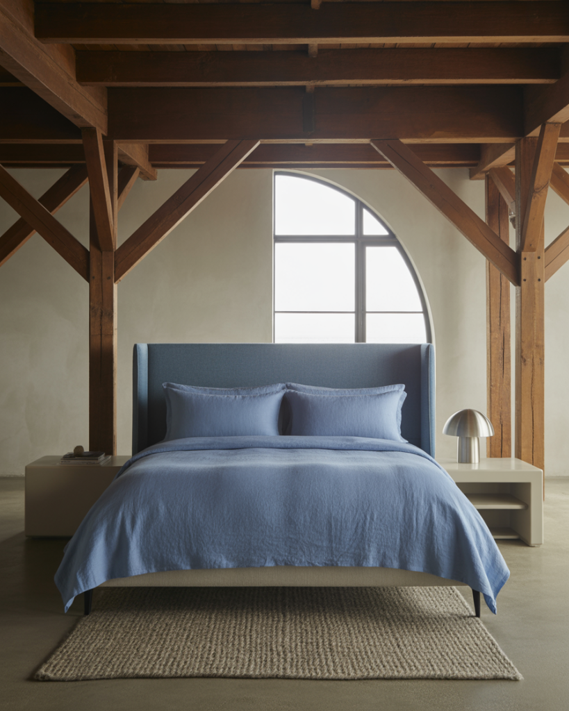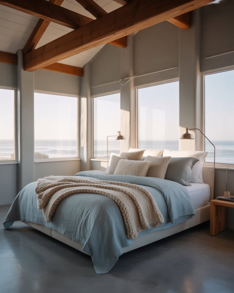 Mixing seaside calm with industrial details creates a striking contrast. Exposed beams, metal light fixtures, and rough textures soften when paired with blue linens and neutral furniture. This look is great for urban spaces where you want a nod to the ocean but still keep a city vibe. It’s a refreshing take on coastal style that feels edgy yet livable.