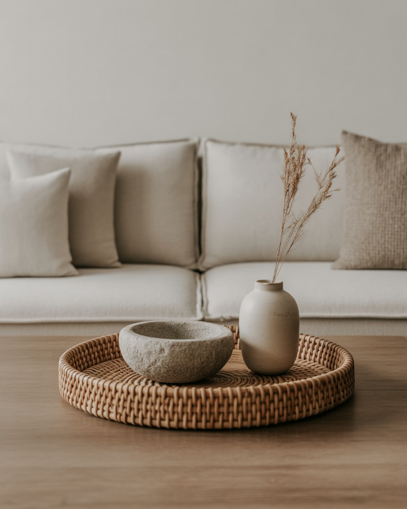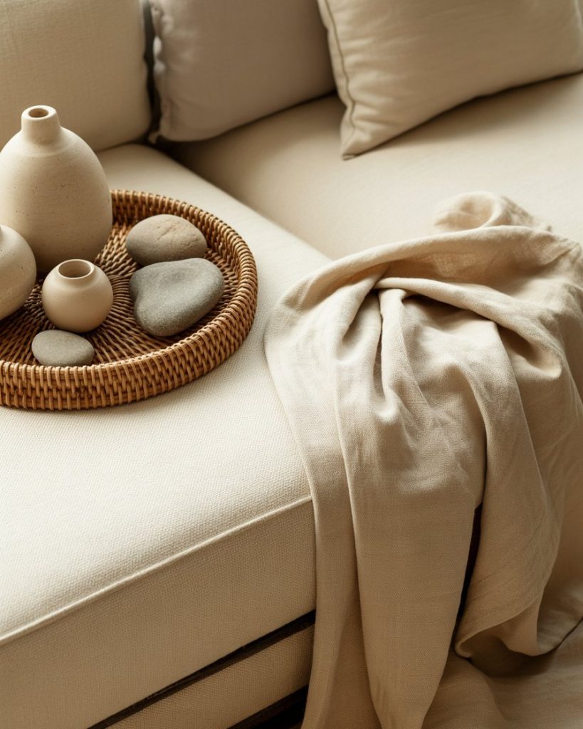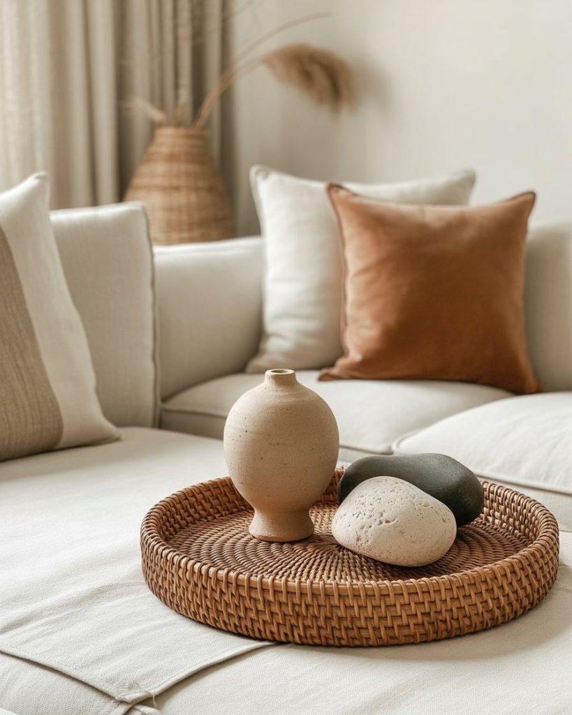 A fully organic layout blends linen, clay, stone, and rattan elements for a calming, nature-inspired look. This style works perfectly in neutral-toned homes where textures carry the visual interest. People who enjoy quiet, grounding spaces often gravitate to this aesthetic for its understated beauty.