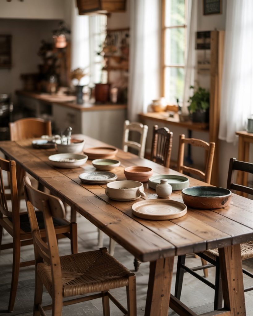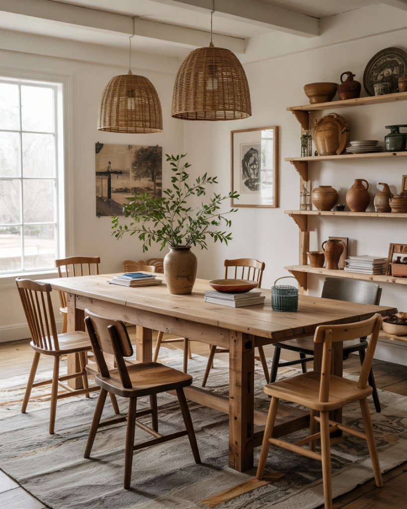 A bold, long wooden farmhouse table remains the heart of modern rustic style. Hand-thrown pottery, linen runners, and mismatched vintage chairs make every meal feel honest and unhurried. Interior guru Joanna Gaines often repeats that imperfections—nicks, knots, scratches—add soul, not mess. The generous length also doubles as a homework, puzzle, or bread-kneading station on non-dinner days.