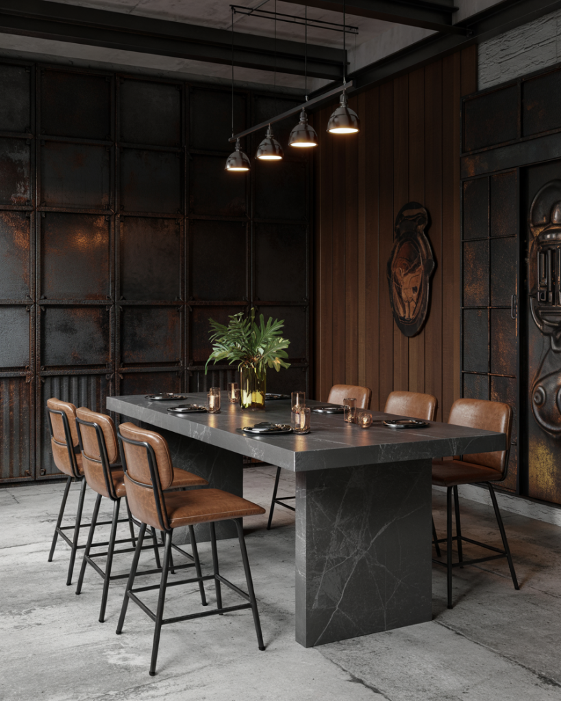A bold grey rectangle stone-top table brings tactile coolness to converted lofts and urban rentals. Pair with steel legs, Edison bulbs, and leather stools for understated grit. I once ate pizza on a concrete-look tabletop and felt like I was in a Brooklyn pizzeria—minus the noise. Stone wipes clean, resists heat, and ages better than faux finishes.
