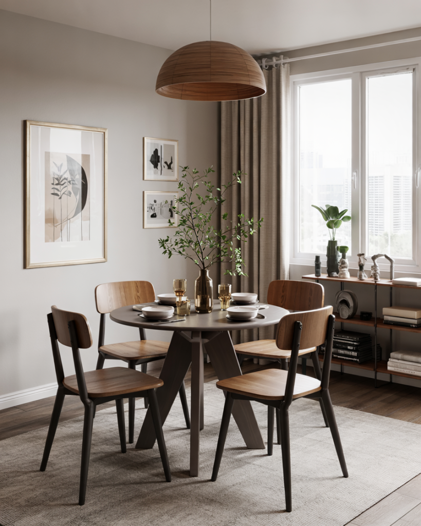 A bold A small round grey table proves you don’t need square footage to host friends. Mix café-style chairs, layered placemats, and a tiny pedestal vase to make things feel intentional. I once squeezed four guests around a 36-inch top—tight but cheerful, especially with dimmed lights and shared tapas. Round shapes keep traffic flowing in studio apartments and soften sharp architectural lines.
