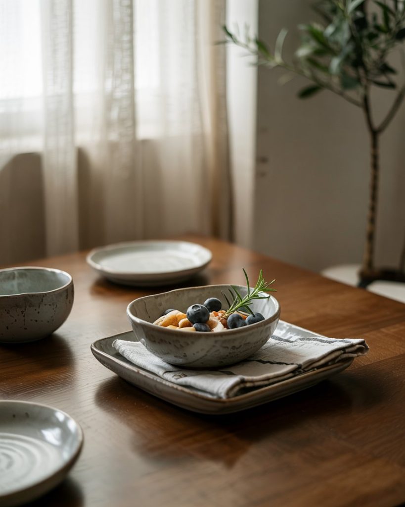 A bold white-grey palette turns the dining table into a calm canvas for busy lives. Stoneware plates, linen napkins, and brushed-steel cutlery deliver quiet sophistication without shouting for attention. Stylist Athena Calderone says neutral tables let food and conversation shine, which matters more than decorative overload. Add one eucalyptus stem for gentle movement and scent.