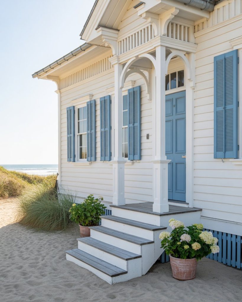 The coastal look thrives on simplicity. Soft cream, beige, and warm white shades reflect light beautifully, making homes feel fresh and open. These tones pair well with blue or gray shutters for a seaside touch. Walking through beach towns, it’s clear why this palette endures—it’s both peaceful and elegant. Expect to see more of these breezy colors in 2026 coastal designs.