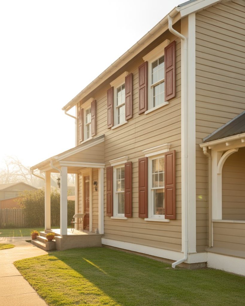 The mix of gray and beige—better known as greige—is here to stay. Warm neutrals remain popular for homeowners wanting understated charm with a modern twist. Pair greige siding with brown, cream, or pale yellow shutters for a balanced effect. This color feels inviting and classic, ideal for any climate. Paint experts note 2026 will continue favoring greige for its subtle sophistication.