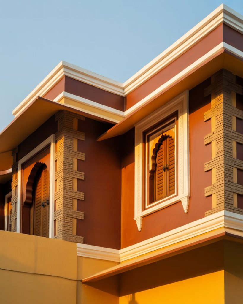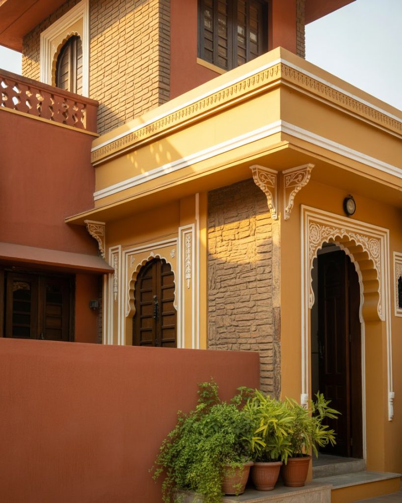 Inspired by Indian-style architecture, homeowners are embracing saturated earth-tone palettes like terracotta, soft yellow, and sandy stone. These warm hues evoke energy, culture, and history, transforming ordinary homes into artful statements. Pair them with neutral cream trims or brown doors to balance intensity. This globally inspired look resonates with those seeking character and warmth.