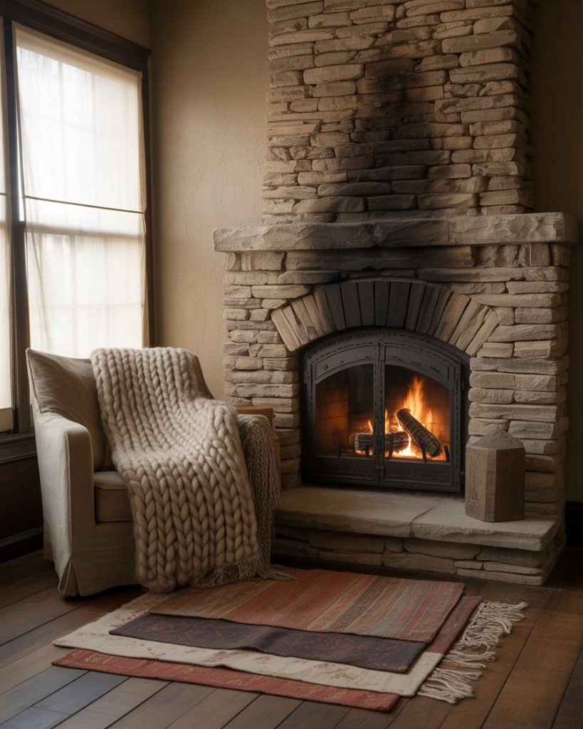 There’s a reason stone fireplaces never go out of style—they bring earthy texture and timeless appeal. In 2026, the rustic look is being paired with soft textiles like wool throws and layered rugs to make the hearth area even more inviting. This approach shines in cabins or homes where people want a grounded, nature-connected feel. Positioning seating at the front of the fireplace enhances the communal mood.