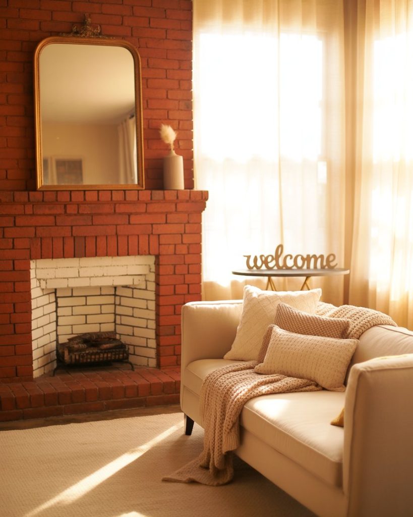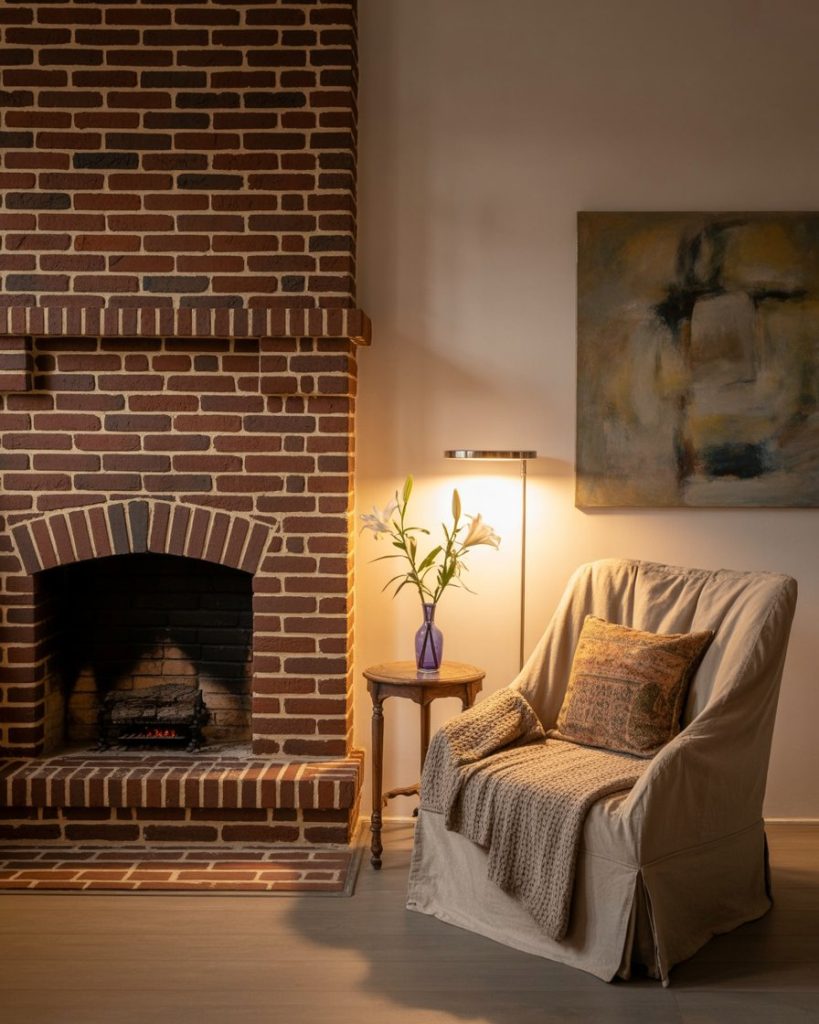 A red brick fireplace instantly evokes nostalgia, reminding many of their grandparents’ homes. In 2026, decorators are combining vintage bricks with sleek metal accents or even painting portions white for a hybrid classic-modern look. Style experts like Emily Henderson recommend letting natural brick remain visible for authenticity, especially in living rooms where warmth and character matter.