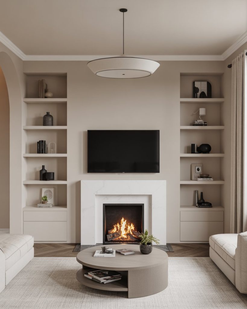 Mounting a TV above the fireplace is still debated by decorators, but when done correctly it can save space and streamline design. In 2026, slimmer screens and adjustable mounts make this setup more comfortable on the eyes. Surround the mantel with clean shelving to balance entertainment with style. It’s especially practical in compact living rooms.