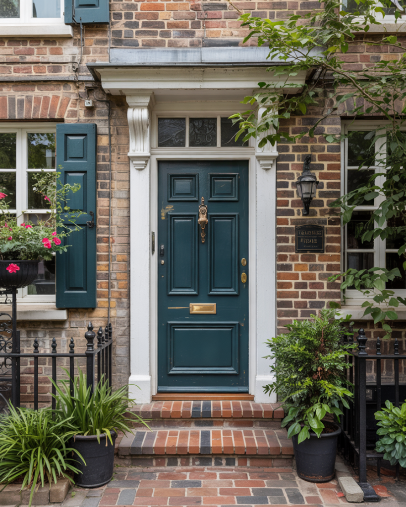 For a red brick home, a deep teal door offers a stylish twist on a classic look. The mix of blue and green tones balances the warmth of the brick and brings contemporary freshness. Experts say teal remains a top choice for 2026, ideal for those wanting a color that’s bold but still timeless.
