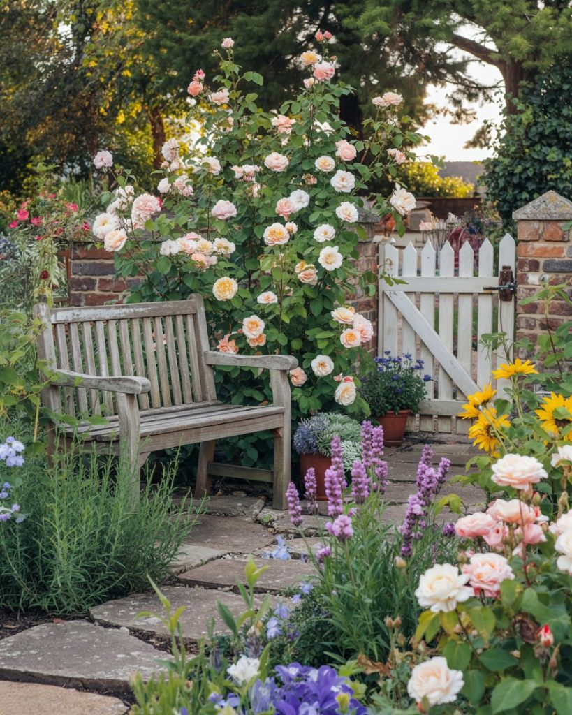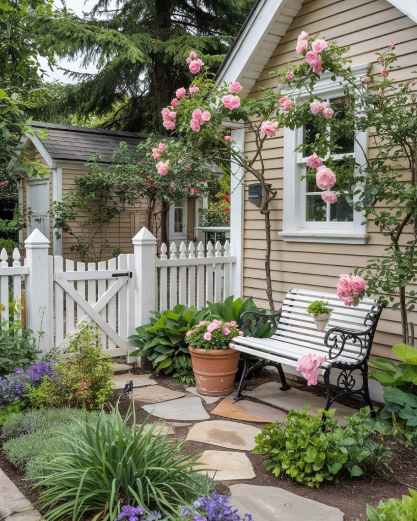 A classic cottage garden blends herbs, perennials, and climbing rose varieties in joyful disorder, perfect for a welcoming front yard. Unlike strict layouts, this style celebrates color and charm, influenced by English villages but adapted for American climates. In 2026, younger gardeners are embracing cottage style for its pollinator value and nostalgia—think lavender next to tomatoes, daisies beside mint, and a chipped bench that tells a story.
