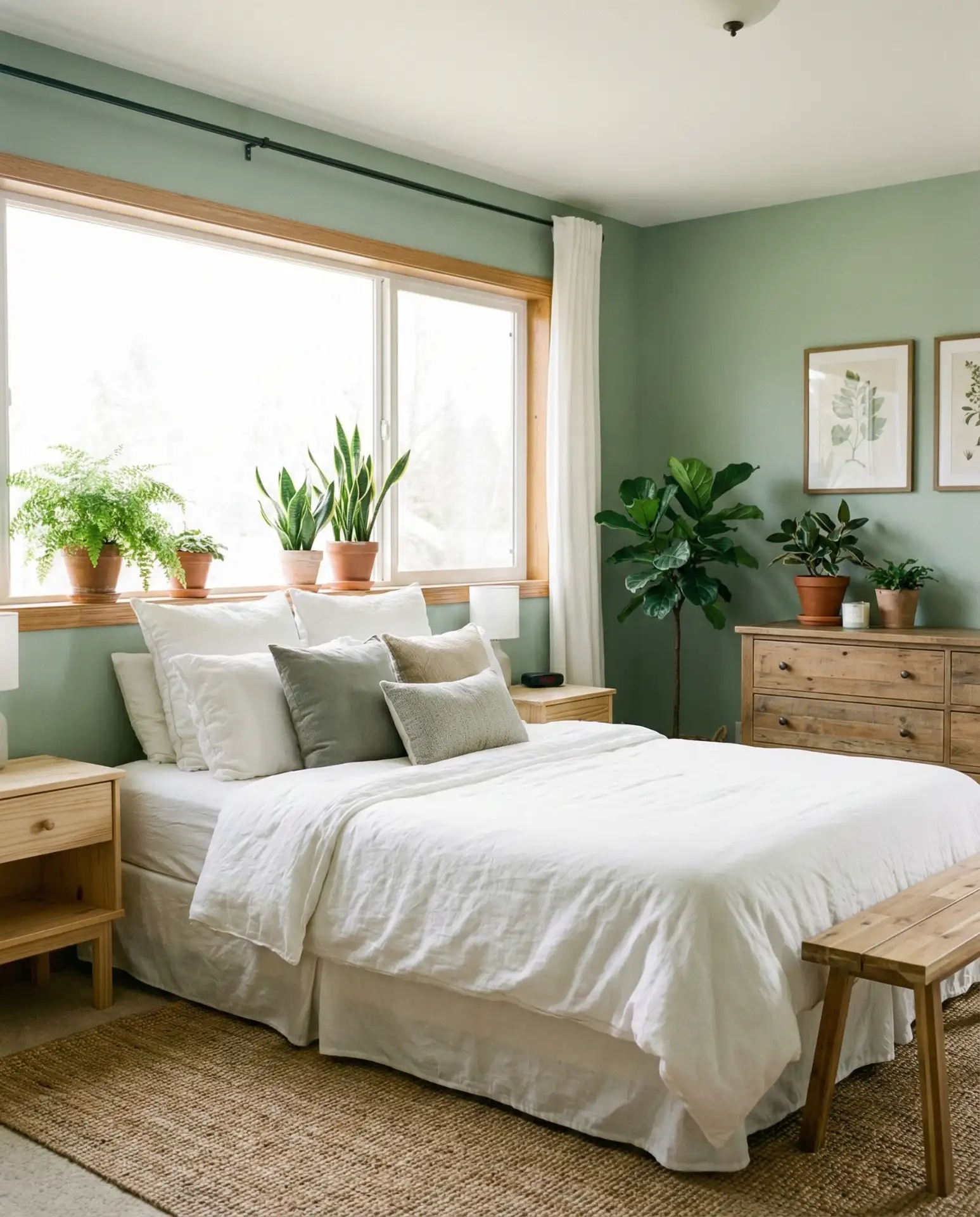 Harness the restorative power of green by creating a plant-filled sanctuary that brings the outdoors in through both color and living elements. Paint walls in soft sage, olive, or eucalyptus tones, add several easy-care houseplants like pothos or snake plants, and incorporate botanical prints or leaf-patterned textiles. This biophilic approach has been shown to reduce stress and improve air quality, making it particularly thoughtful for guests who need genuine restoration during their stay.