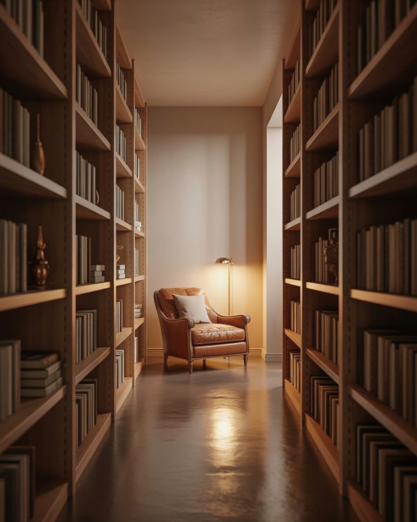 Convert a long or large hallway into a library wall with shelves packed with books and vintage objects. In narrow spaces, sleek shelving keeps it stylish but not bulky. It is good for the upstairs landing or school-inspired home office area—both handsome and functional.