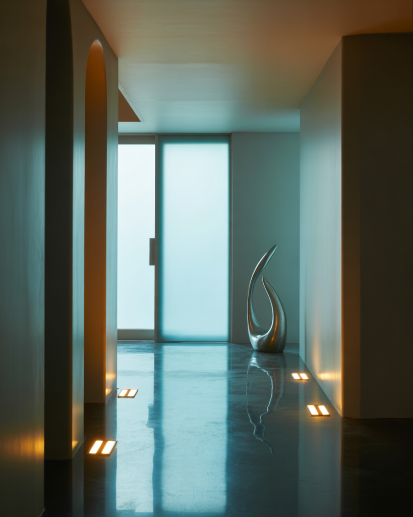 Add lit niches to exhibit art, vases, or sculptures. Great for wide or large halls near stair or upstairs places. It’s a slick minimalist way to bring a little gallery flare into the home—it’s like walking through the corridor to a boutique hotel.