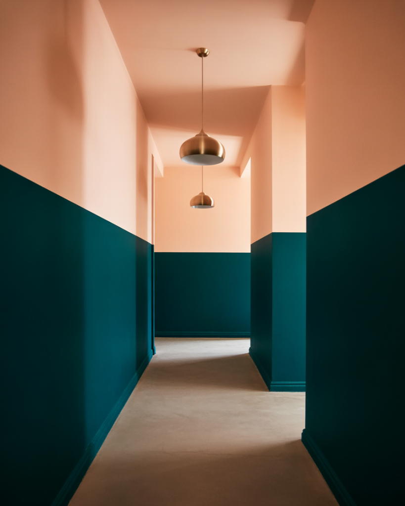 Two-tone walls immediately grant any long narrow hallway extra dimension. Paint the lower half darker to give it more grounding, and keep the upper half light for pop. Experiment with vintage navy and cream or the suave look of blush and white. Easy-peasy, either one will give form to small staircases and wide halls alike.