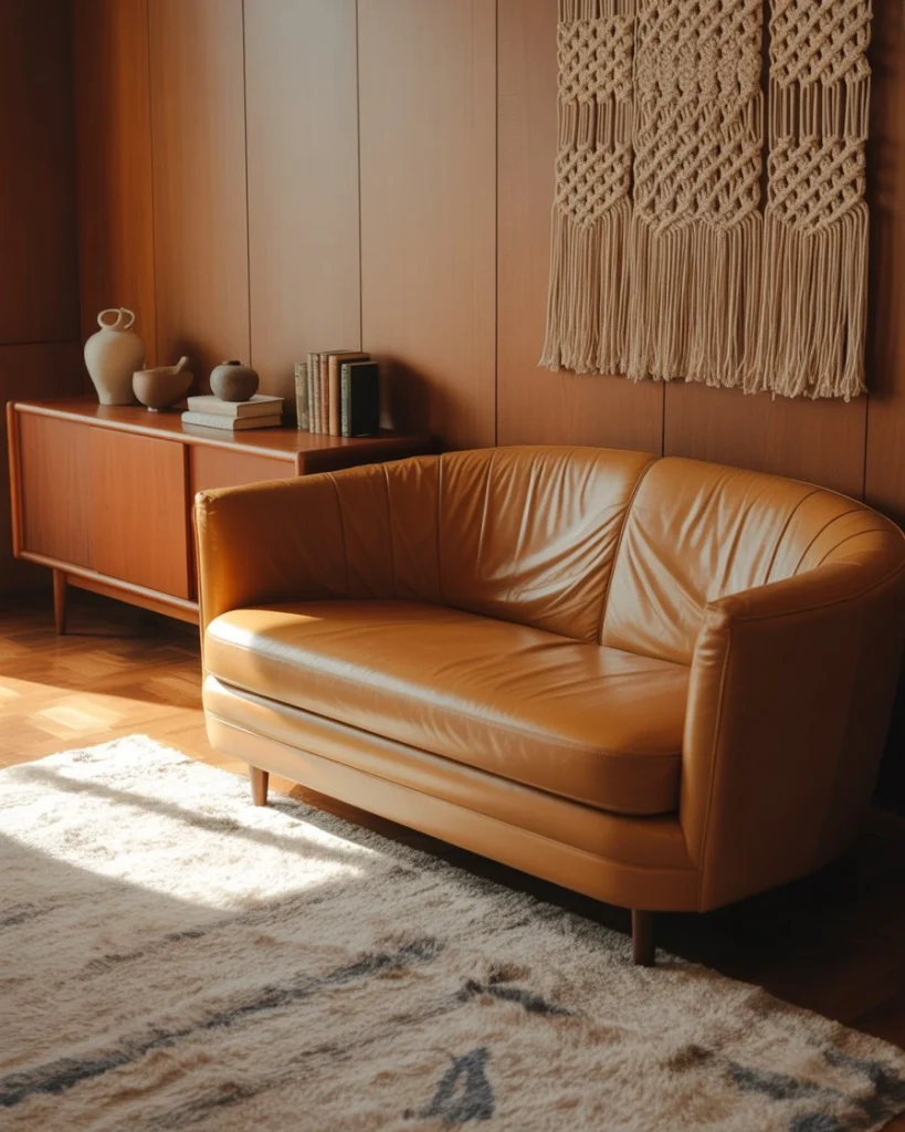 Where this works best: smaller urban apartments and mid-century homes where sharp corners can make spaces feel cramped. Curved pieces visually expand a room and create natural circulation patterns, making them ideal for multifunctional spaces. They also photograph beautifully, which is why they’re dominating Pinterest boards this year. Consider pairing a curved sofa with a low, round coffee table to amplify the effect without overwhelming the room.