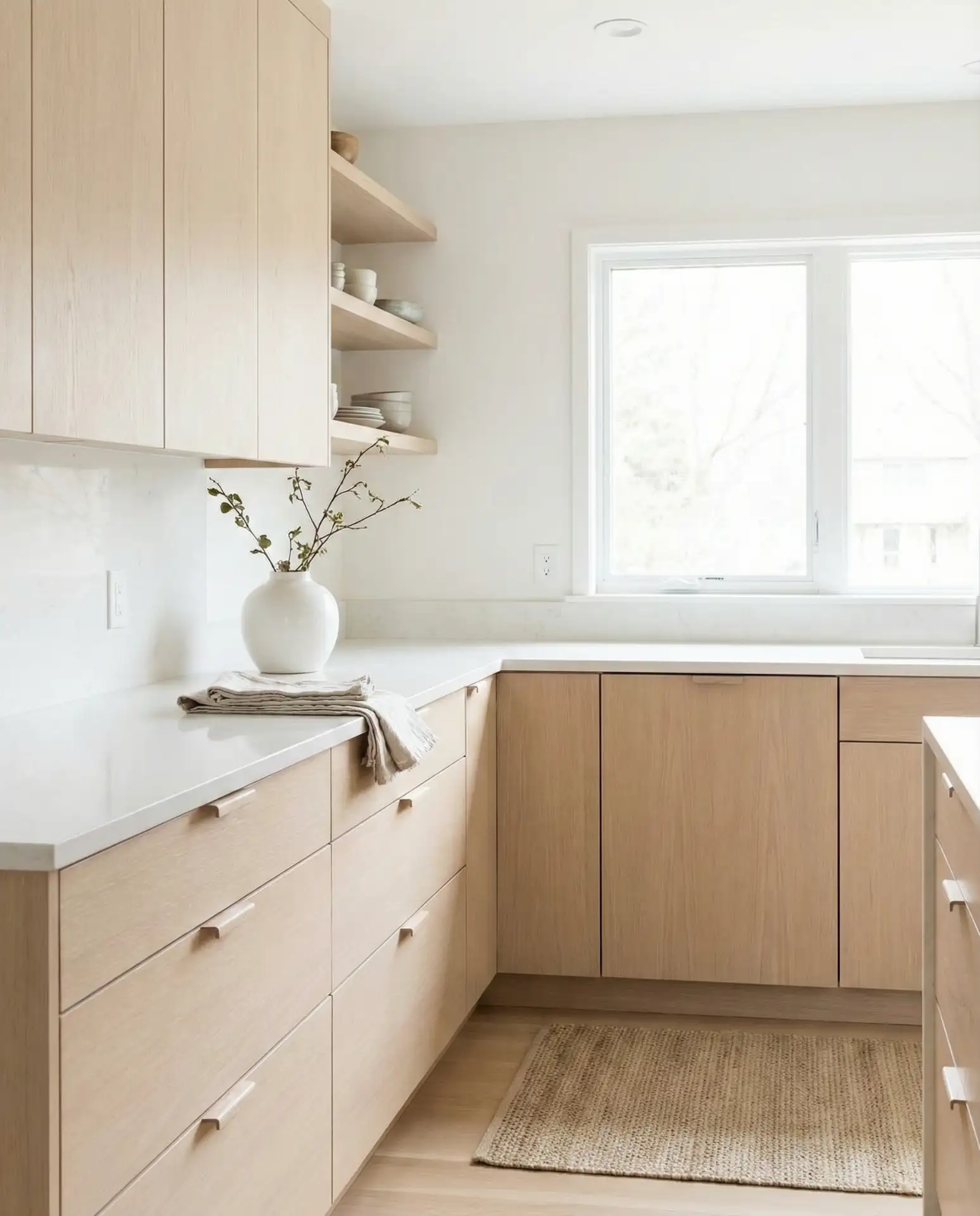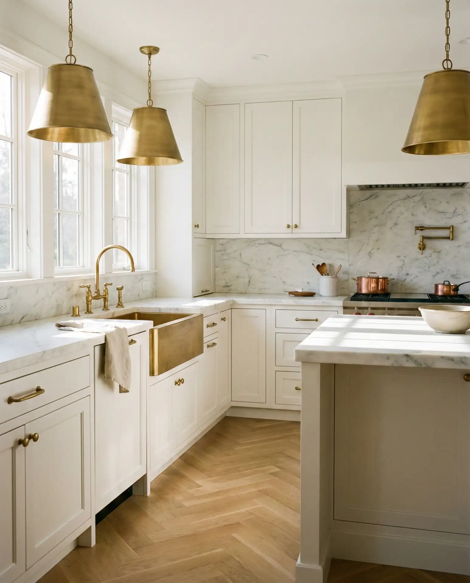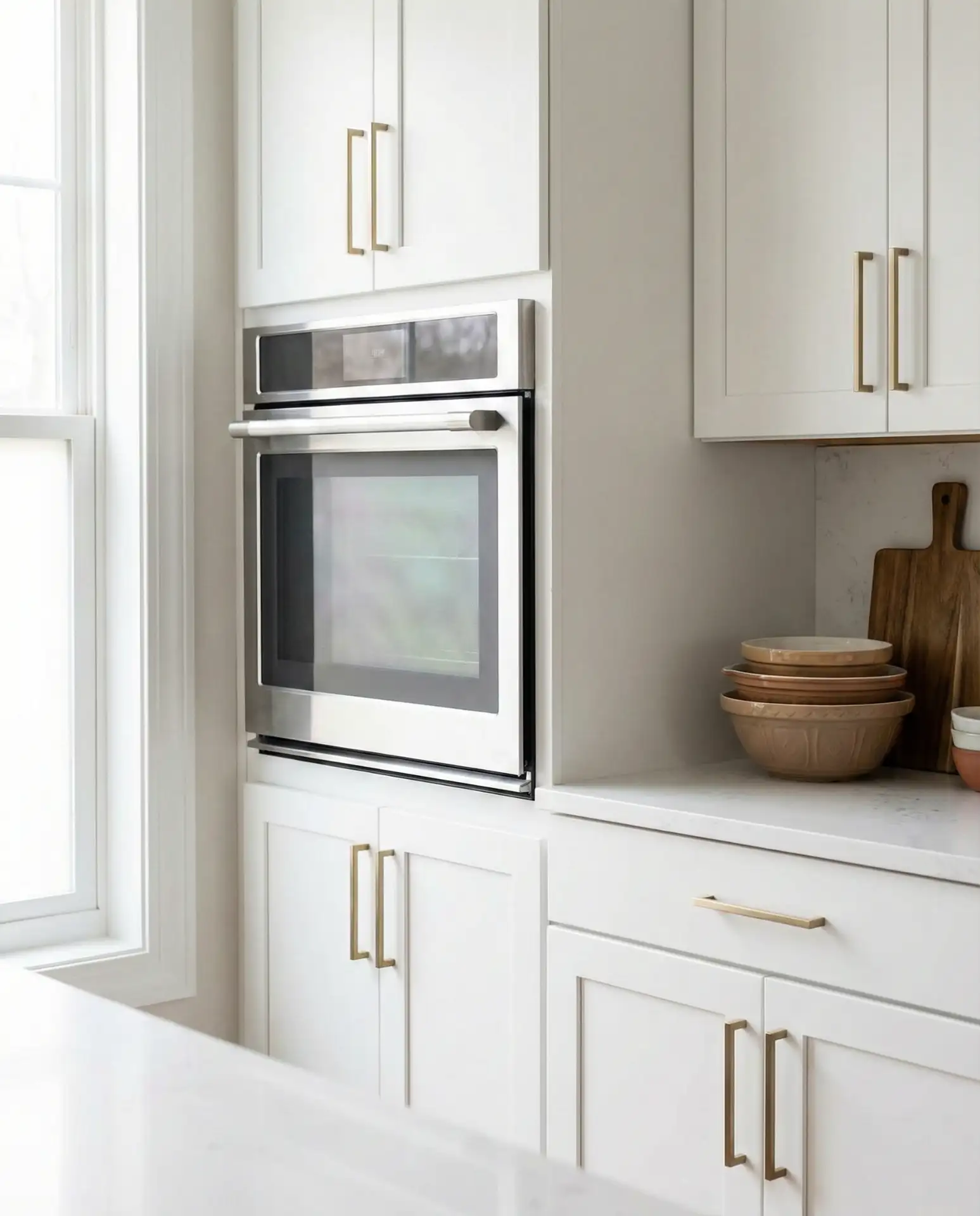 Taj Mahal quartzite has earned cult status among designers and homeowners who want the look of Carrara marble without its maintenance headaches. This natural stone features soft ivory backgrounds with delicate gray and gold veining that catches light beautifully, creating depth and movement that feels both luxurious and understated. Unlike marble, quartzite is significantly harder and more resistant to etching, making it practical for everyday kitchen use. The material pairs effortlessly with white cabinets, creating a bright, airy aesthetic that never feels stark or cold thanks to the stone’s warm undertones.