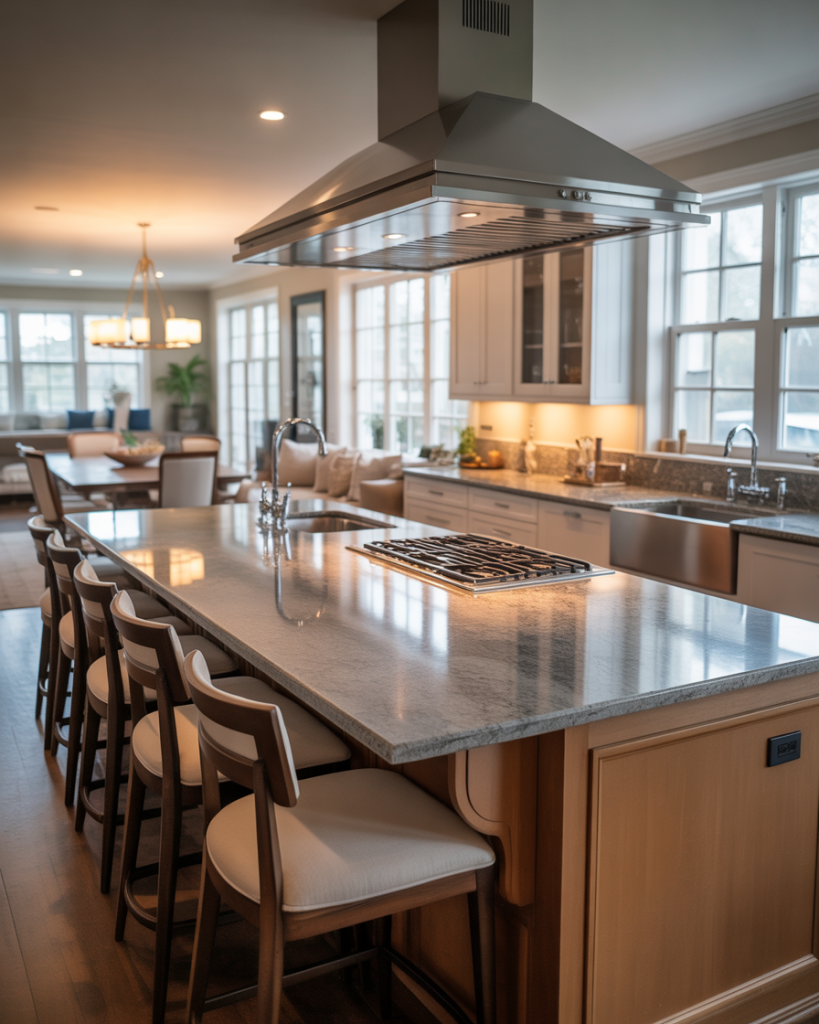 Integrating a stove into your island turns meal prep into a social experience. It allows the cook to face family and guests in open kitchens, creating connection while cooking. Choose a black induction cooktop for a sleek look or white oak cabinetry for warmth. Kitchen brands like Poggenpohl lead this innovative approach, blending performance with design.