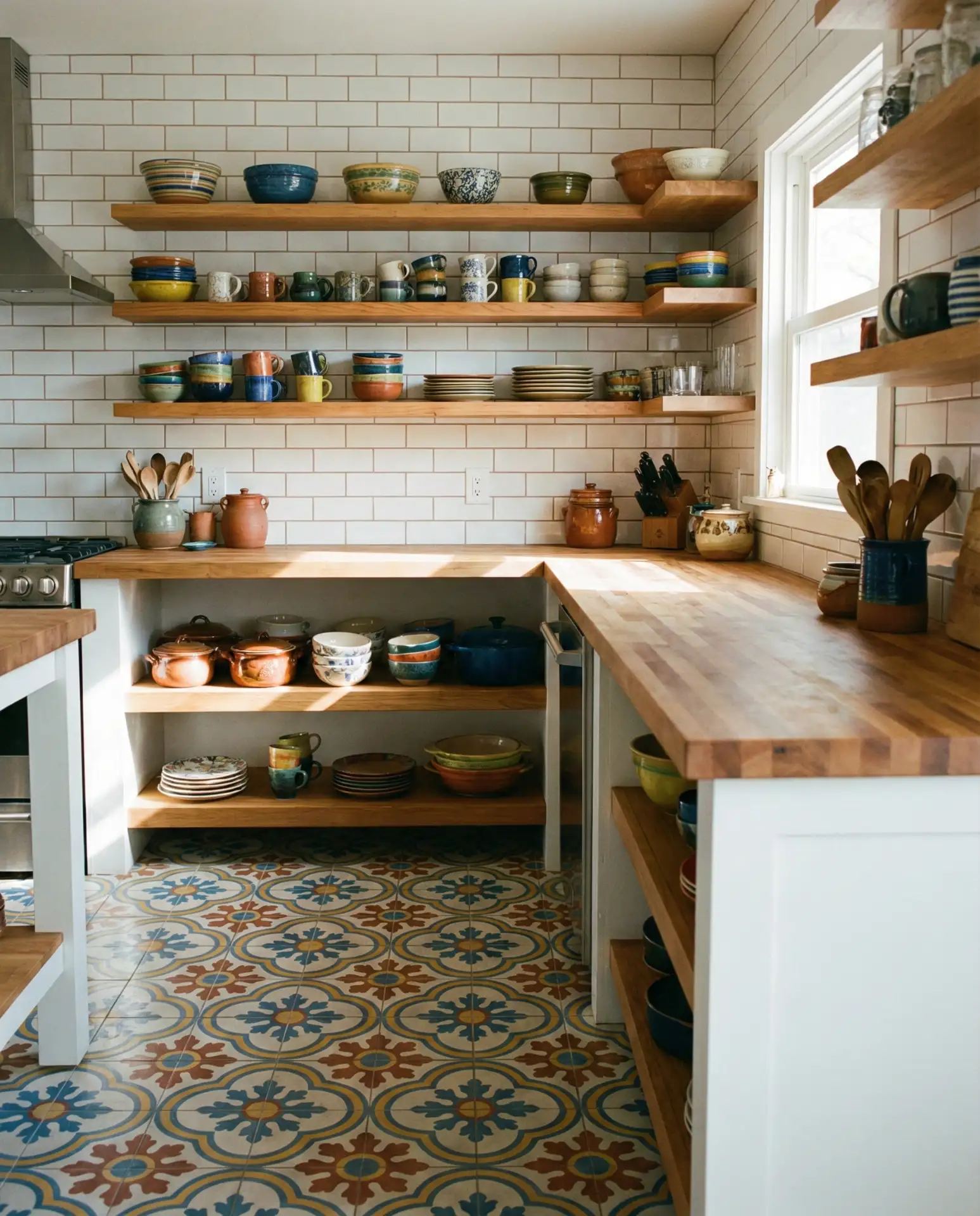 Extending a bold zellige or encaustic tile pattern right up to the window frame turns your sink backsplash into an architectural moment that draws the eye upward. It’s especially effective in Indian or globally inspired kitchens where color and pattern are celebrated rather than minimized. The repetition of shapes creates rhythm, and because the tile wraps the sill, it visually enlarges the window opening even if the glass itself is modest in size.