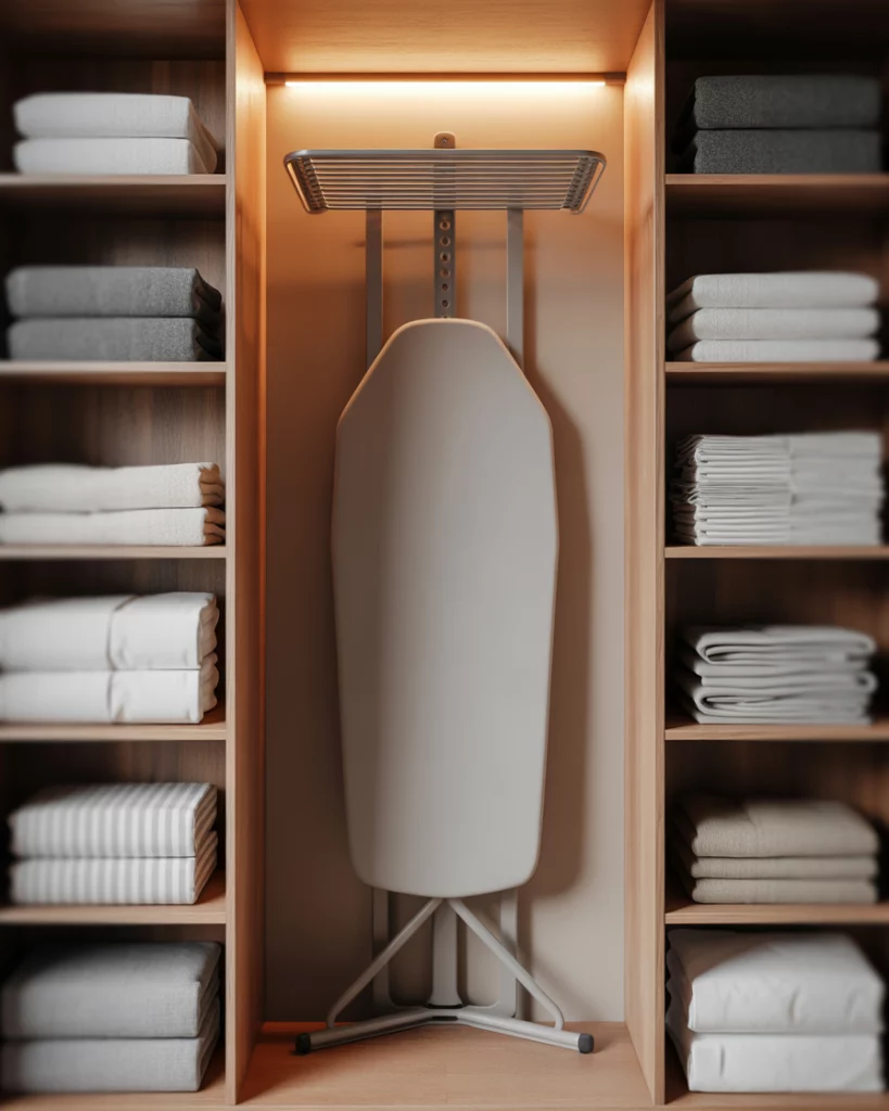 Blend function and storage with a folding ironing board built into your linen closet. Keep towels, sheets, and an iron in one place—especially practical for master or walk-in closets. A touch of DIY ingenuity keeps your linens crisp.